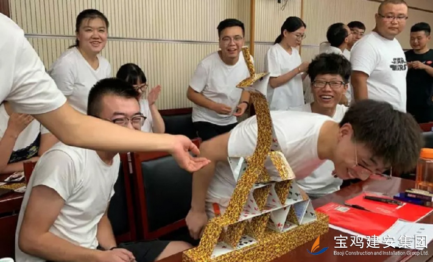 培訓(xùn)期間,公司組織了團(tuán)隊(duì)拓展活動(dòng),本次拓展分8支戰(zhàn)隊(duì),結(jié)合無(wú)領(lǐng)導(dǎo)小組討論、木桶原理和管理游戲等方法,進(jìn)行搭紙牌、攻城略地、隔空取水和乒乓快跑四項(xiàng)活動(dòng)。在團(tuán)隊(duì)拓展中,各隊(duì)隊(duì)員都充分發(fā)揮自己的聰明才智,展示自己的才華,合理分工協(xié)作,挑戰(zhàn)一個(gè)個(gè)看似不可能完成的任務(wù)。通過(guò)四項(xiàng)活動(dòng)的舉行及點(diǎn)評(píng),團(tuán)隊(duì)協(xié)作的概念逐步深入員工腦海,深入淺出地讓員工明白了1+1>2的道理,同時(shí)也是在團(tuán)隊(duì)拓展的活動(dòng)當(dāng)中,人力資源部發(fā)現(xiàn)了許多名具有領(lǐng)導(dǎo)力的新員工,他們?cè)诨顒?dòng)中參與度高,組織有序,影響力強(qiáng),最終帶領(lǐng)自己的團(tuán)隊(duì)取得了優(yōu)良的成績(jī)。