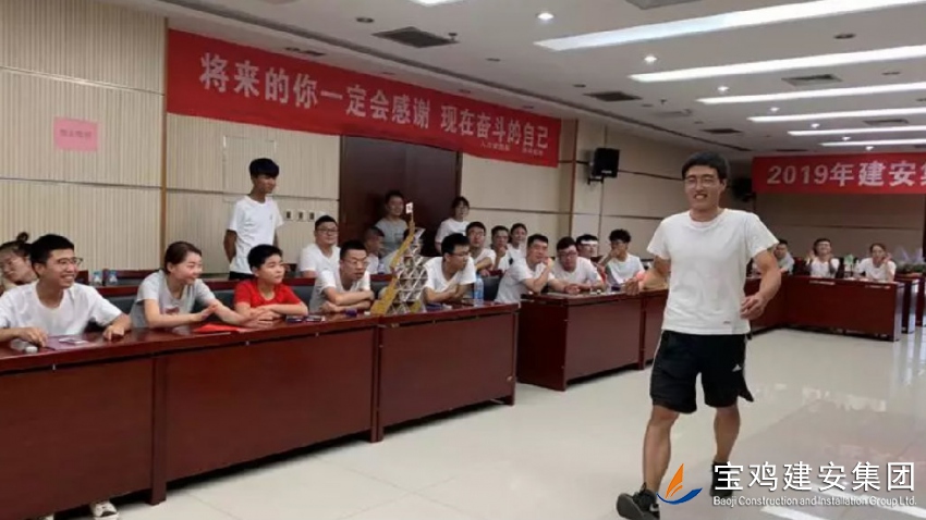 2019年7月21日,寶雞建安集團(tuán)股份有限公司在建安大廈22樓第三會(huì)議室開(kāi)始了新員工入職培訓(xùn)。本次培訓(xùn)為期8天,內(nèi)容充實(shí),勞逸結(jié)合,使新員工由校園走向社會(huì),從學(xué)生走向職場(chǎng)人有了一個(gè)平穩(wěn)的過(guò)渡。