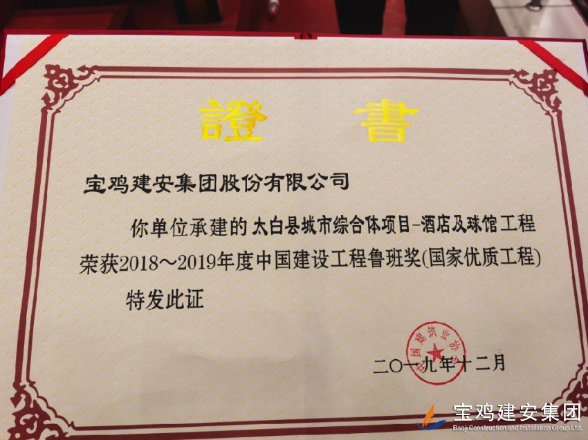 睽違三十載,喜開(kāi)二度梅。12月10日,從北京會(huì)議中心傳來(lái)喜訊,由寶雞建安集團(tuán)承建的太白縣城市綜合體項(xiàng)目—酒店及球館工程,在全國(guó)建筑行業(yè)精品工程最高獎(jiǎng)項(xiàng)大比拼的激烈角逐中,力挫群雄,脫穎而出,最終摘得2018--2019年度中國(guó)建設(shè)工程魯班獎(jiǎng)(國(guó)家優(yōu)質(zhì)工程)桂冠,這也使寶雞建安集團(tuán)成為繼法門寺重建工程獲得寶雞第一個(gè)建筑魯班獎(jiǎng)后,時(shí)隔近30年再次奪得“魯班獎(jiǎng)”的企業(yè),從而書寫了建筑行業(yè)頂級(jí)獎(jiǎng)“梅開(kāi)二度”的傳奇!