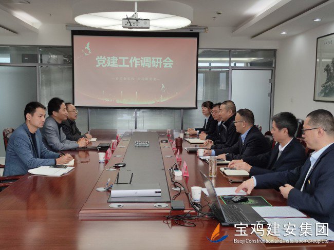 10月19日上午,市住建局黨組專職副書記馬平科,人教科科長(zhǎng)李泉、副科長(zhǎng)陳發(fā)平一行前往寶雞建安集團(tuán)公司調(diào)研指導(dǎo)主題教育開(kāi)展及“四強(qiáng)”非公企業(yè)黨組織建設(shè)等情況。集團(tuán)公司黨委書記、董事長(zhǎng)、總經(jīng)理景常榮,黨委副書記胥永寧,黨委副書記、紀(jì)委書記侯少偉和部分黨委委員及基層黨支部書記參加了調(diào)研活動(dòng)。