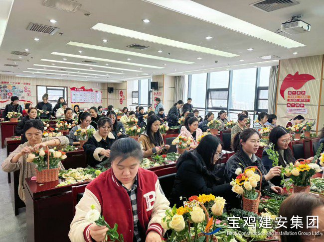 為慶祝第115個“三八”國際勞動?jì)D女節(jié),3月6日下午,公司黨委、工會和團(tuán)委聯(lián)合舉辦了“魅力巾幗 花漾生活”創(chuàng)意插花活動。 此次活動旨在提升女職工的幸福感,陶冶情操,展示公司女員工的精神風(fēng)貌,進(jìn)一步團(tuán)結(jié)和激勵廣大女員工以更高的熱情投入工作?;顒釉诠窘ò泊髲B22樓黨員活動室舉行,來自機(jī)關(guān)各部室和基層各單位的60多名女職工踴躍參與。