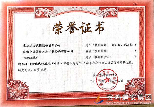 長(zhǎng)嶺108#樓及地下車庫 省優(yōu)質(zhì)結(jié)構(gòu)工程