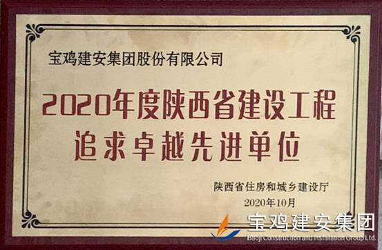 2020年度陜西省建設工程追求卓越先進單位