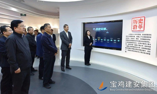 10日上午,調(diào)研組一行前往寶雞建安大廈,觀看企業(yè)宣傳片,參觀了公司23樓體育健身設(shè)施場館及職工文化娛樂配套項目;在建安大廈22樓企業(yè)展廳里,領(lǐng)導(dǎo)們仔細(xì)觀看了陳列在此的企業(yè)榮譽成績、代表性工程及歷史實物,詳細(xì)了解了寶雞建安集團(tuán)六十年輝煌歷史,以及集團(tuán)在推動寶雞城建事業(yè)中所做出的卓越貢獻(xiàn)和重要地位。